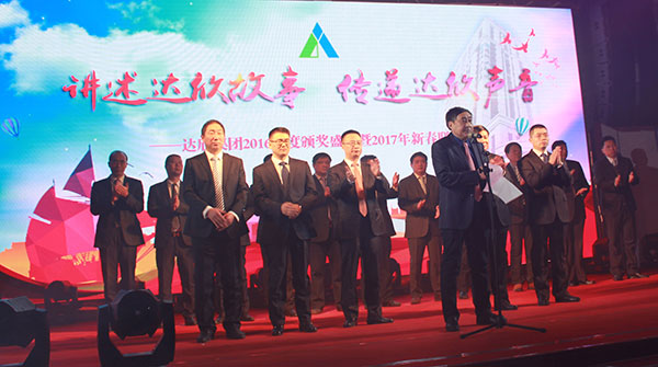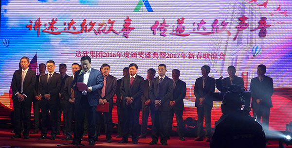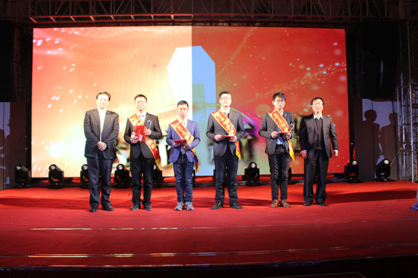 集團(tuán)黨委書記劉厚純宣讀了表彰決定, 縣領(lǐng)導(dǎo)為獲得集團(tuán)2016年度的創(chuàng)優(yōu)標(biāo)桿、實(shí)力標(biāo)桿、項(xiàng)目標(biāo)桿與管理標(biāo)桿、達(dá)欣新銳等先進(jìn)個人代表進(jìn)行了頒獎。