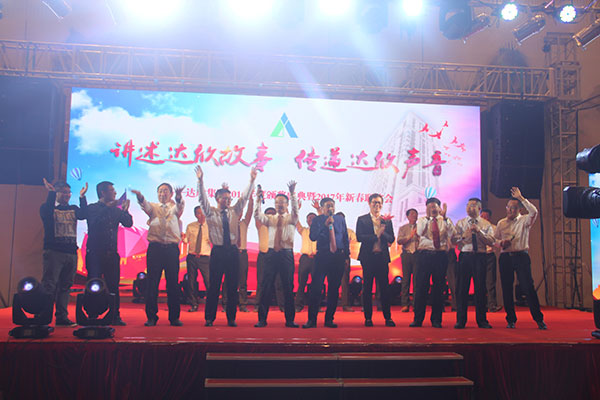 集團(tuán)高管們在澎湃的“達(dá)欣之歌”聲中激情登場,公司董事長馬和軍進(jìn)行了致辭答謝。他回顧了公司 一年來所取得的輝煌成績,感謝社會各界及公司全體同志們的努力,并對公司的未來發(fā)展之路描繪了藍(lán)圖;接著,縣委書記陸衛(wèi)東發(fā)表重要講話, 他指出,建筑業(yè)是我縣的傳統(tǒng)產(chǎn)業(yè),也是一個富民強(qiáng)勢產(chǎn)業(yè),還是我縣財(cái)政收入的重要來源之一,作為縣內(nèi)的骨干企業(yè),達(dá)欣公司步入了公司歷史以來發(fā)展最快、榮譽(yù)最高、分配最多、貢獻(xiàn)最大的時(shí)期,他希望公司要加快發(fā)展,高起點(diǎn)定位,突出重點(diǎn),好中求快,實(shí)現(xiàn)達(dá)欣新飛躍。