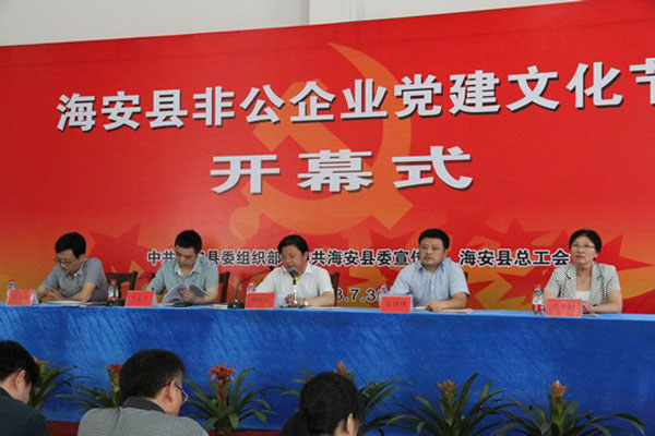 目前,我縣共有非公企業(yè)2998家,從業(yè)人員14.9萬人,非公企業(yè)黨組織總體組建率達98.6%。近年來,我縣不斷探索創(chuàng)新非公企業(yè)黨建文化工作,548家規(guī)模企業(yè)提煉形成獨特的企業(yè)精神,46家企業(yè)創(chuàng)辦內刊,《中洋報》被評為省十佳企業(yè)期刊,《海迅之歌》被評為省十大企業(yè)金曲,并打造了海迅集團“家”文化,鑫緣集團“精品人品同在,誠信創(chuàng)新永恒”價值觀等一批黨建文化品牌。雙弘紡織黨支部被表彰為全國創(chuàng)先爭優(yōu)先進基層黨組織,海安高新區(qū)等被表彰為省“四統(tǒng)籌一創(chuàng)爭”示范單位。