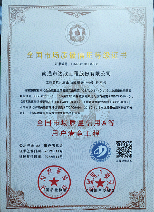 一舉獲得三項殊榮不僅僅是向外界展示了達欣集團在工程建設上的技術實力和精品工程信譽度,更是達欣集團在工程建設中以“質量贏得市場,使企業(yè)建立較強的市場競爭力”。