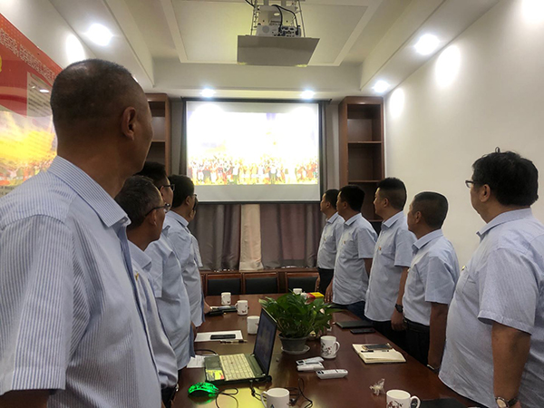 6月30日下午,第三工程公司支部全體黨員在齊唱高亢的國歌聲中開始了紀念黨的99華誕系列活動。