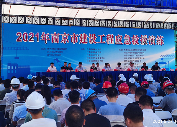 6月28日,由南京市城鄉(xiāng)建設(shè)委員會(huì)、南京市應(yīng)急管理局、江寧區(qū)人民政府主辦的“南京市建設(shè)工程應(yīng)急救援演練觀摩會(huì)”在第二工程公司蘇沃科技園項(xiàng)目部召開。南京市建委副書記朱家祥、南京市安委辦專職副主任韓成頌;江寧區(qū)人民政府副區(qū)長(zhǎng)孫兆金、江寧區(qū)城鄉(xiāng)建設(shè)局局長(zhǎng)易強(qiáng)等領(lǐng)導(dǎo),全市施工企業(yè)、監(jiān)理單位、建設(shè)單位負(fù)責(zé)人及相關(guān)人員等近500余人參加本次活動(dòng)。集團(tuán)常務(wù)副總經(jīng)理王邦國(guó)主席臺(tái)就坐。