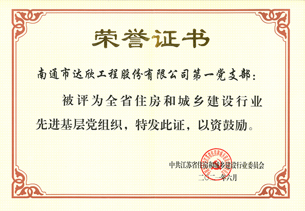 近日,第一黨支部被中共江蘇省住房和城鄉(xiāng)建設(shè)行業(yè)委員評為“全省住建行業(yè)先進基層黨組織”稱號,同時也是江蘇出省建筑單位進滬唯一一家獲得此榮譽的先進黨組織。