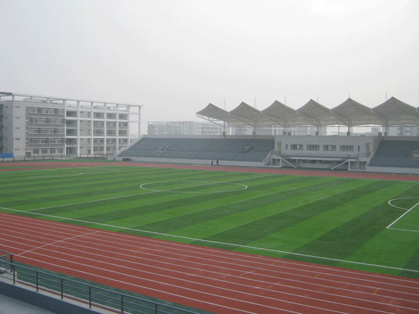 江蘇省海安縣職業(yè)教育中心校體育場為400米塑膠田徑運動場工程,田徑場占地面積16999m2,主看臺長150米,寬17.5米,輔看臺長104米,寬10米。主看臺占地面積為2173.4m2,輔看臺占地面積為1008m2,田徑場跑道為混合型塑膠面層,中間足球場為進(jìn)口人工草皮,周邊輔助區(qū)為人工草皮。該體育場的建成將為海安群眾性體育活動的開展提供便利。