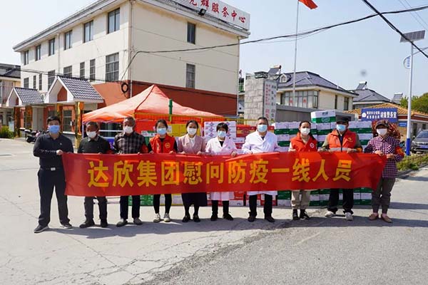 4月8日,達(dá)欣集團(tuán)·魯班傳人志愿服務(wù)總隊(duì)在黨委書記劉厚純的帶領(lǐng)下,來到胡集街道胡集花苑“疫”線卡口,看望慰問奮戰(zhàn)在抗疫一線的工作人員,為他們送上牛奶、面包、火腿腸、方便面等近萬元的物資,為助力本土疫情防控奉獻(xiàn)達(dá)欣人的愛心與力量。