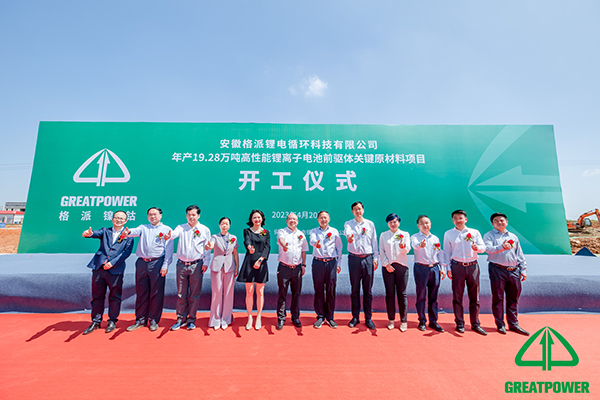 許華為書記宣布安徽格派鋰電循環(huán)科技有限公司高性能鋰離子電池前軀體關(guān)鍵原材料項(xiàng)目正式開(kāi)工。