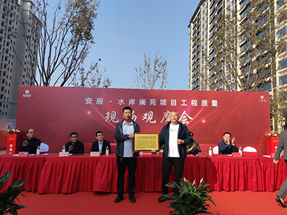 10月19日,第三工程公司承建的安居?水岸瀾苑項(xiàng)目工程質(zhì)量現(xiàn)場觀摩會暨廣平縣2023年度建設(shè)質(zhì)量樣板工程頒獎(jiǎng)儀式隆重舉行。邯鄲市建筑工程質(zhì)量管理站副站長徐金峰、張少軍科長、廣平縣建筑工程質(zhì)量監(jiān)督站,廣平縣在建工程各施工單、監(jiān)理單位、地產(chǎn)開發(fā)商代表等120余人參加活動。安居?水岸瀾苑項(xiàng)目經(jīng)理吉光代表公司接受“2023年度建設(shè)質(zhì)量樣板工程”獎(jiǎng)牌。