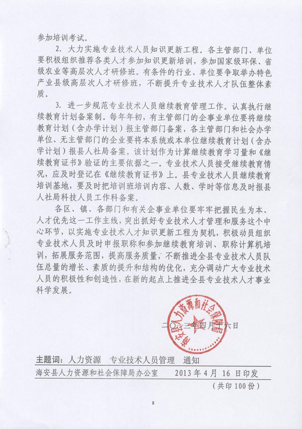 (4)報送材料地點:海安縣人社局科技人員工作科,西四樓406室(初定、高級評審)、408室(初、中級評審),(地址:海安縣城長江東路10號)。聯(lián)系電話:88926280。